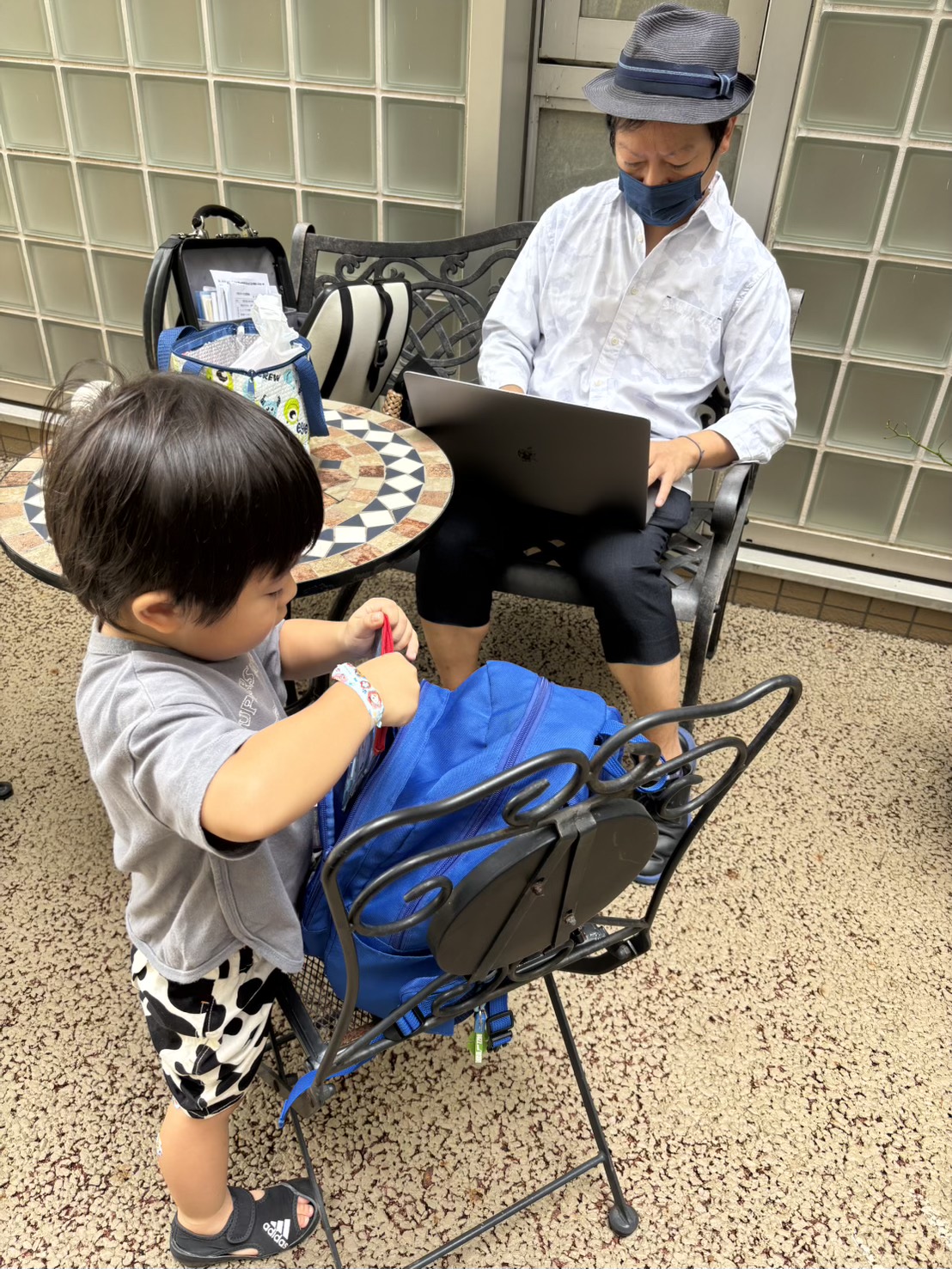 ご迷惑をお掛けした関係部局の皆さまには本当に申し訳ない限りでしたが、ほとんどのケース(一部の電話の中では大声で歌っているなどしましたが…)で静かにしてくれていた息子にも感謝です。まぁ、診察時は大騒ぎでしたし…アイキャッチ画像は妻が盗撮(?)していた病院の中庭での一コマですが、ここで会った初対面の女の子と走り回るくらいには元気を持て余していましていて、決しておとなしくはしていませんでしたけれど…。