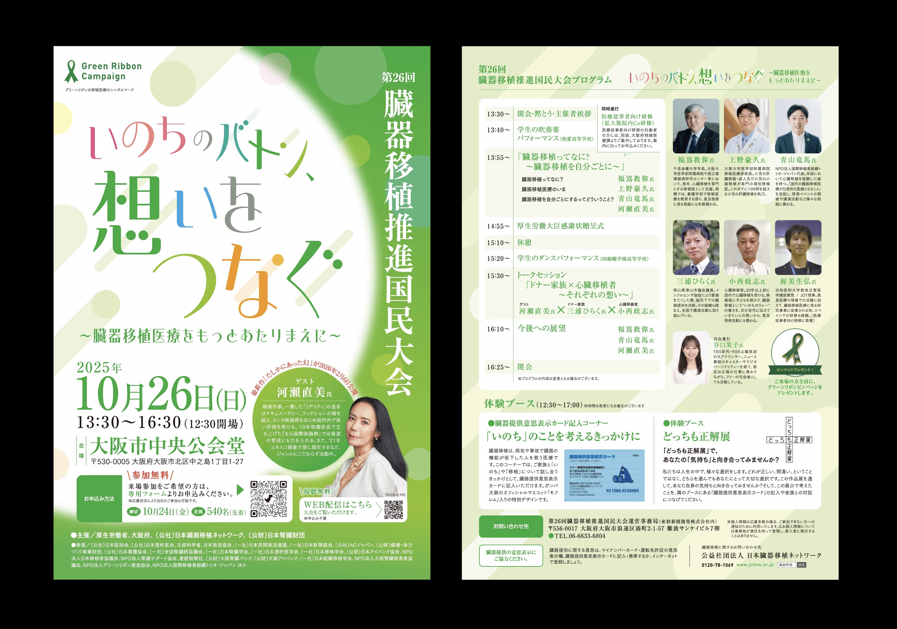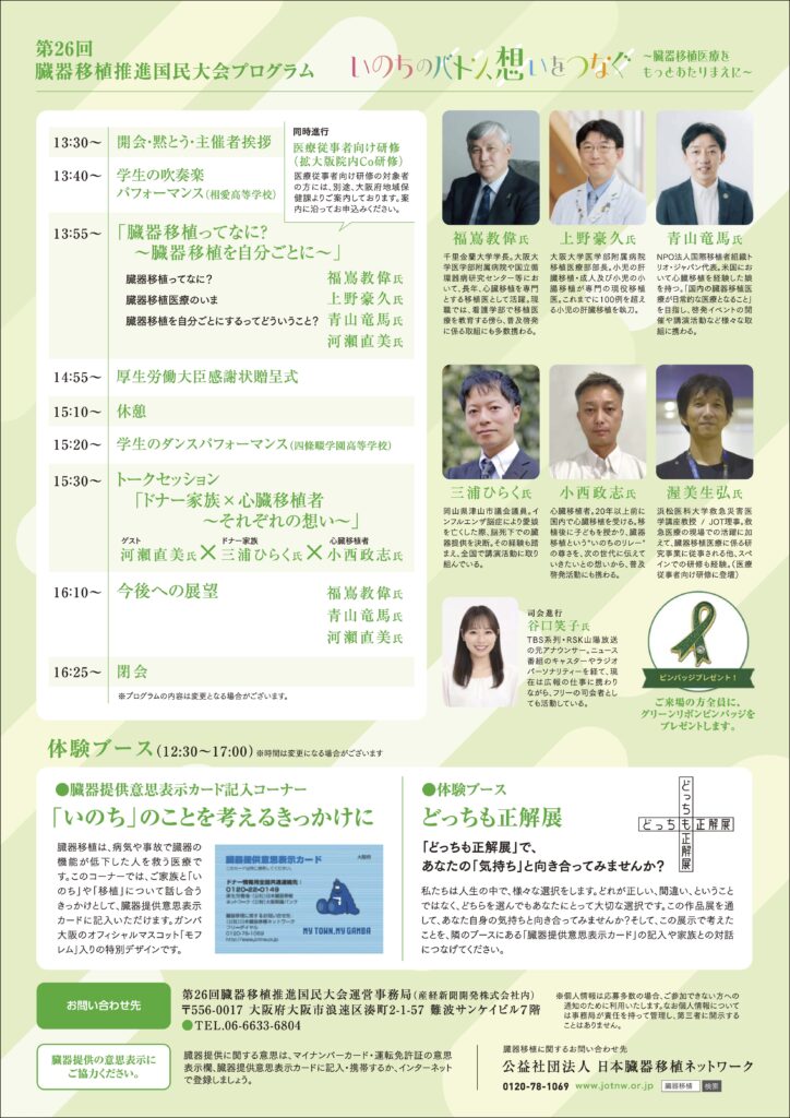 第26回臓器移植推進国民大会の詳細なプログラムは下記の通り。