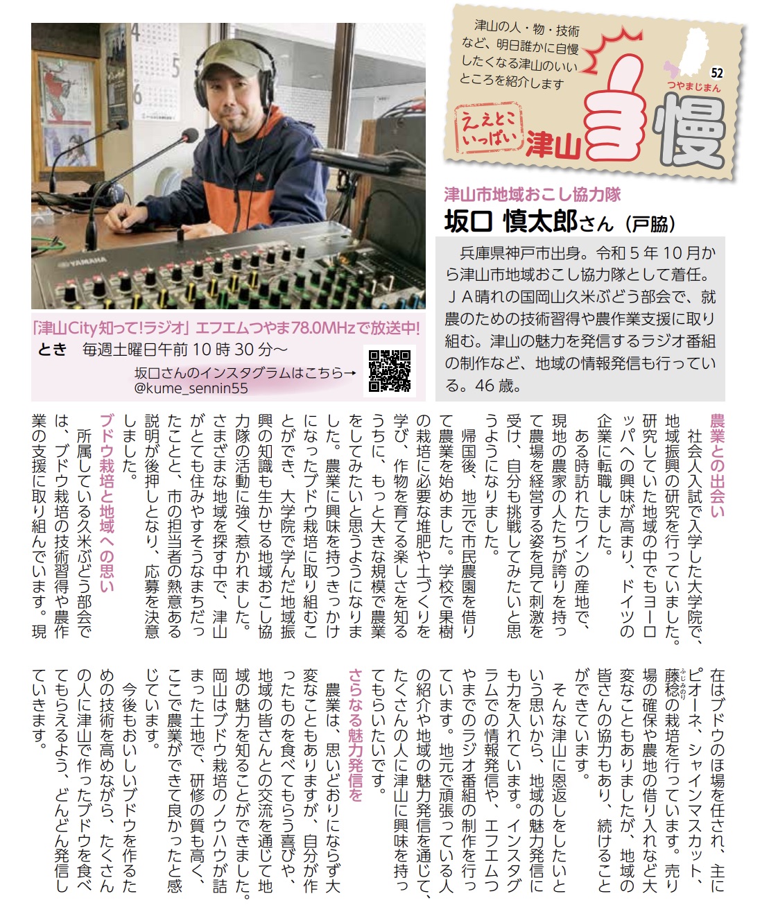 本日の記事は、津山市に来てくださっている地域おこし協力隊の一人、坂口慎太郎さんとお会いして、お話させていただいた内容をベースに、みうらひらくブログ風に味付けして再構成したものでして…味の濃さは当社比120%の内容です。