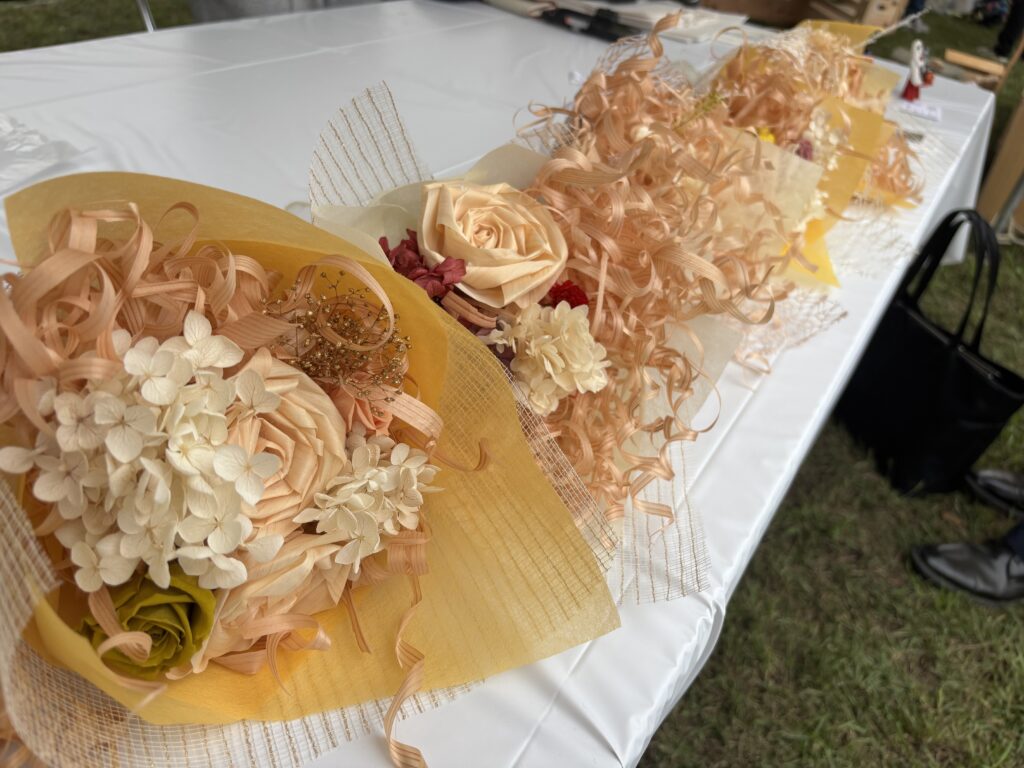 会場内では、これまでの活動を通じてご縁のあった方々や、多くの友人や知人…そのご家族などに再会できました。「あれ、ひらくくんじゃないの!」「お久しぶり!」…そんな感じで何人もの皆さまに声を掛けていただき、まるで地元の同窓会のような雰囲気の時間帯もありました。様々な団体等が多種多様な出展をなさっており、老若男女問わず楽しめるイベントになっていましたので、小さなお子さん連れのご家族も多く、特に長い行列で大人気の様子だった焼きそばや、興味深げな取り組みを行っていた木工体験ブースの前などでの、子どもたちの笑顔が印象的でした。「会えたら見せようと思っていたの!」と言ってくださって、昨年私が配布させていただいたブルーベリーの苗木の成長をスマホの写真で見せてくださる方までおられ、胸が熱くなりました。
