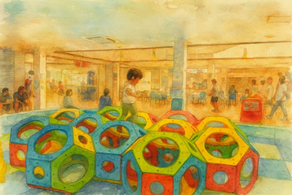 売り場以外にも、子どもが遊べる広場(11歳以下まで)などあり、とても良い感じでした。アイキャッチ画像なんて顔どころかキャラクターも変わっちゃってんじゃんって話なのですが、駄菓子売り場の写真には他のご家庭の皆さまが映り込んだり、色々と問題もあると思うので写真を加工した画像を載せておきます。