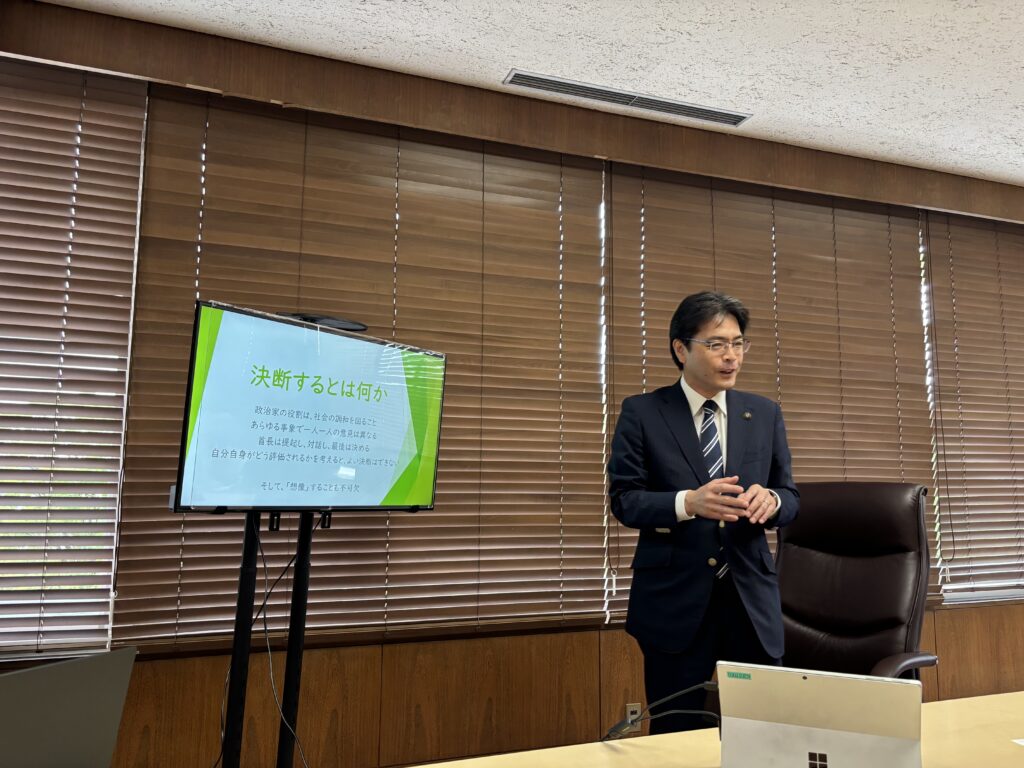 一年少々前に一度訪問させていただいたことがあるだけの関係性ですが、今回、田辺市長はそんな自分のことも記憶してくださっていて、全国を飛び回るメチャクチャ忙しいスケジュールの中で、私たちの視察対応のために1時間半以上も時間を割いてくださいました。前日にもわざわざご連絡くださったり、その圧倒的な全方位への気配り、そしてその上で、ときには非常に難しい決断も含まれる”決定する”という首長の責任に毎日向き合い続けている姿勢には、心から敬意を覚えています。