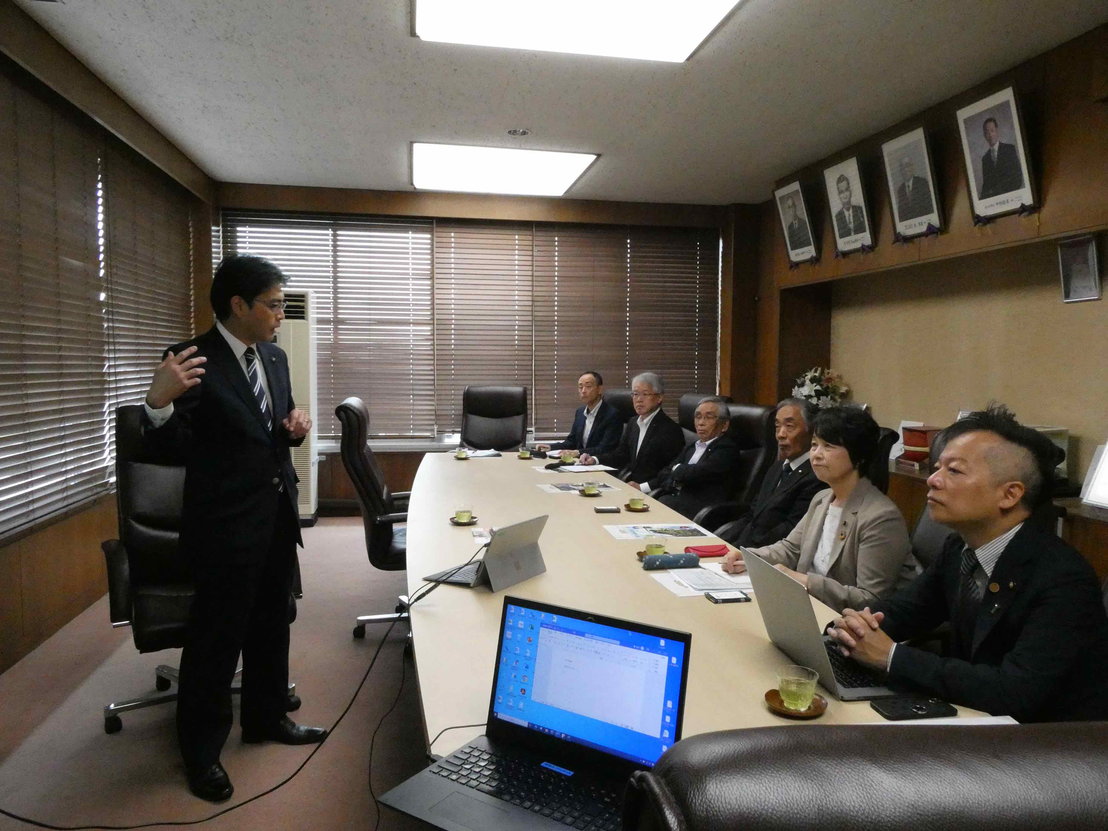 視察の前半戦は田辺一城市長の1時間以上に及ぶ講話…と言うか、完成されたプレゼン!