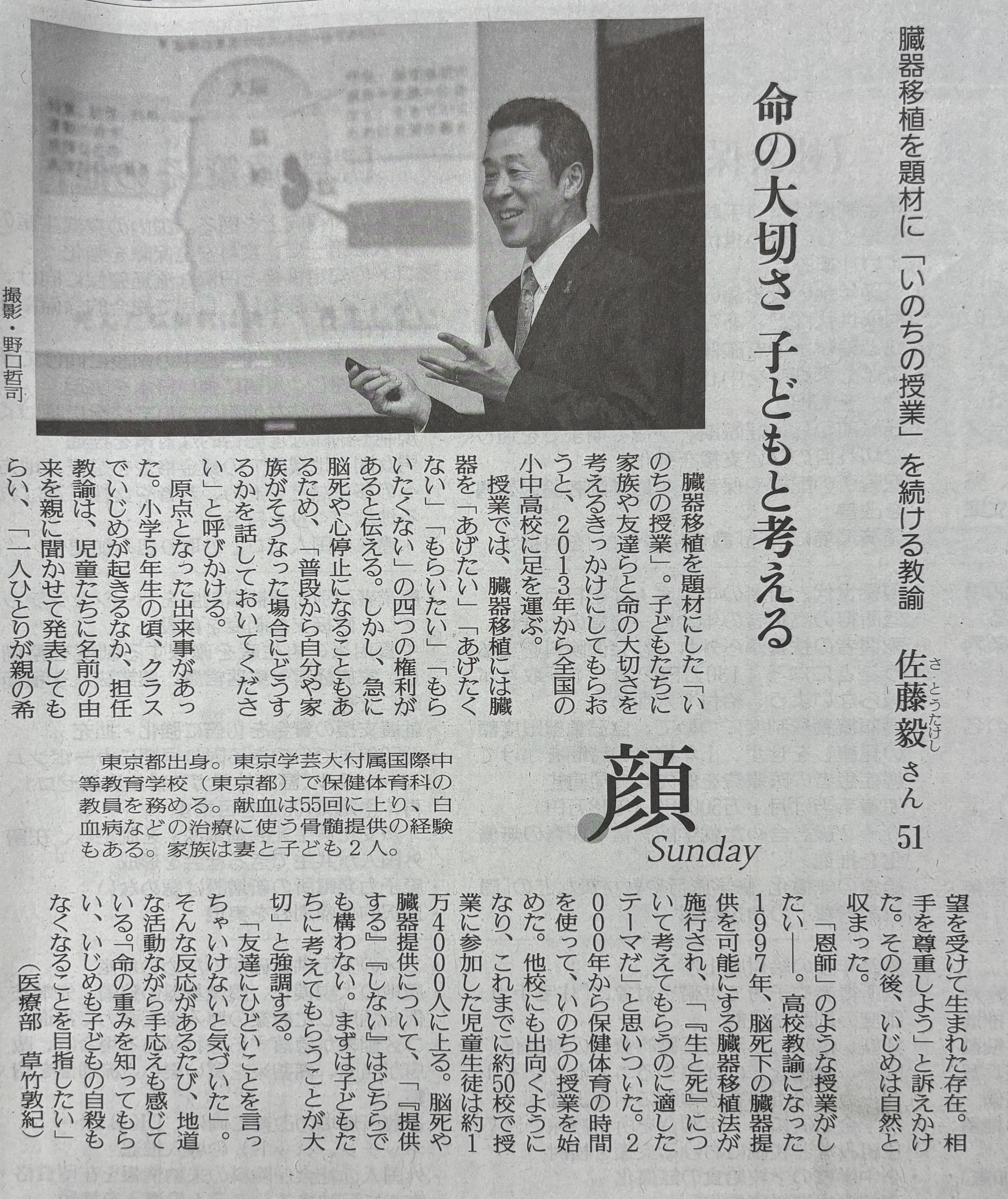 佐藤先生は長きにわたり、臓器移植を切り口とした「いのちの授業」を続けてこられており…私自身もオンラインで、いのちの教育セミナーというJOT(日本臓器移植ネットワーク)関連イベントでお話を伺ったことがありましたし、新聞記事などでも活躍を拝見していました。