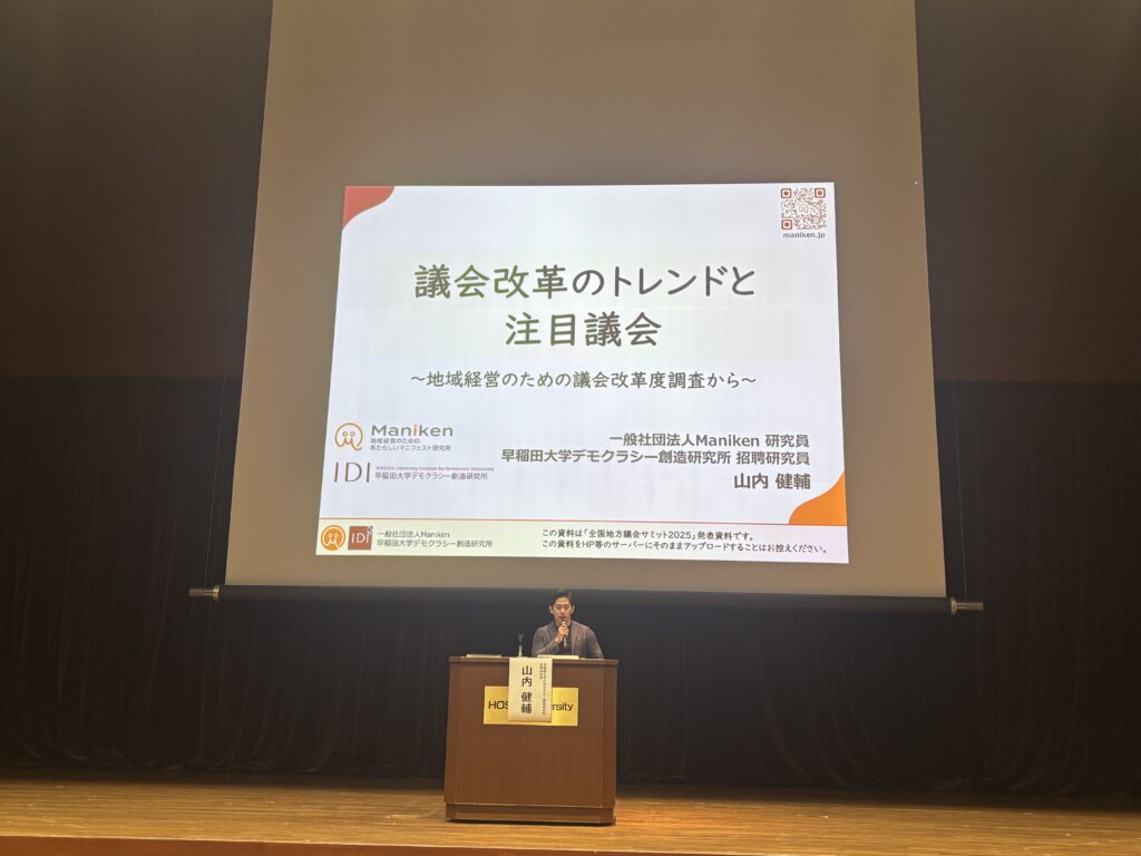 そして、初日の締めくくりは…早稲田大学デモクラシー創造研究所招聘研究員・山内健輔さんによる、議会改革のトレンドと注目議会の紹介でした。