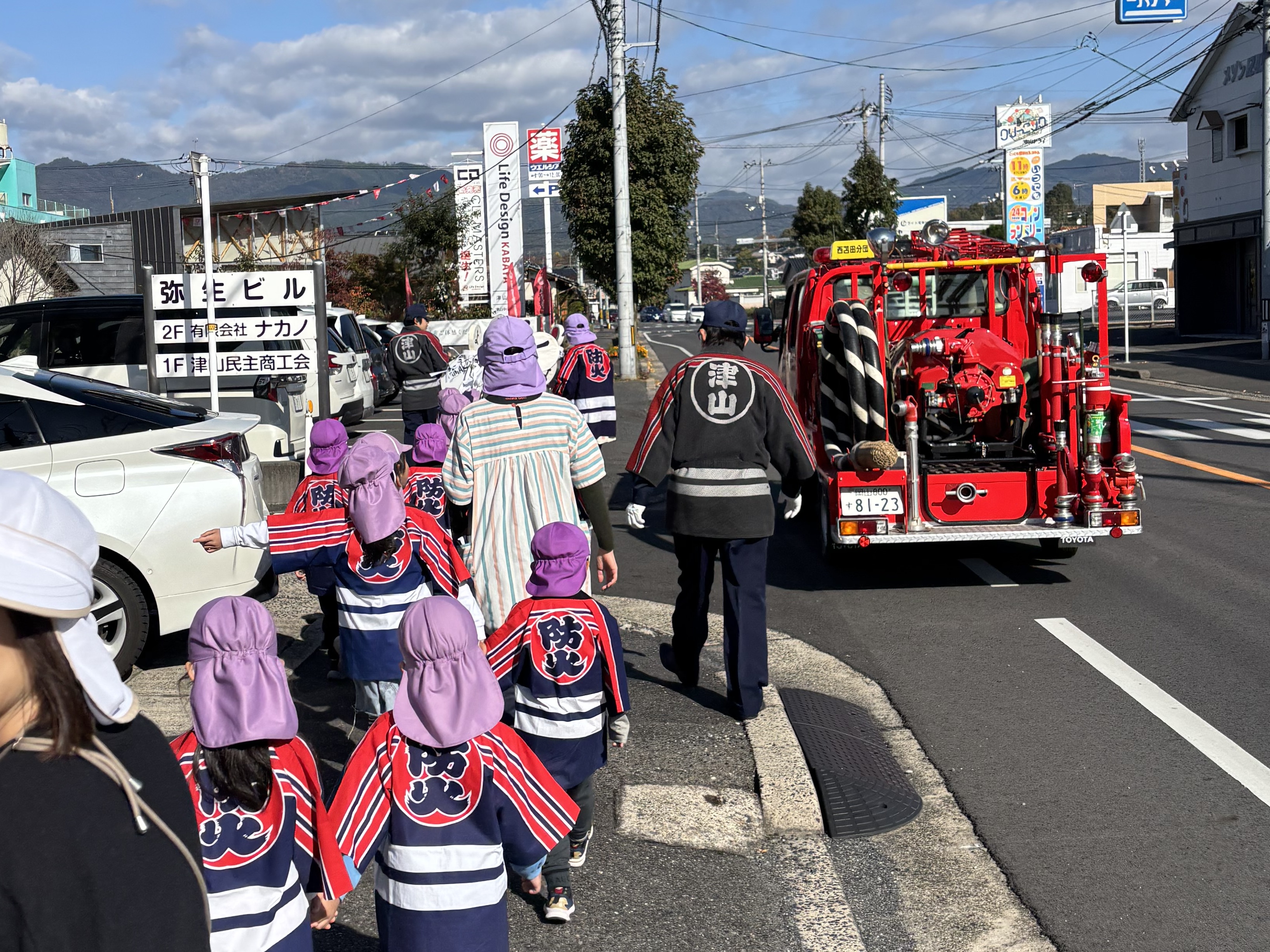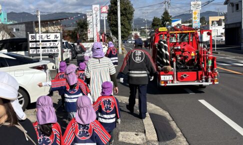 アイキャッチ画像の通りですが…毎年のように参加させていただいている恒例の防火パレードに参加するためでした。今年も秋の全国火災予防運動(11月9日〜15日)に合わせて行われた企画で、年長・年中の園児たちと先生方、そして地域の皆さまのお力もいただきながら、園の周辺をゆっくり練り歩いてきたところです。