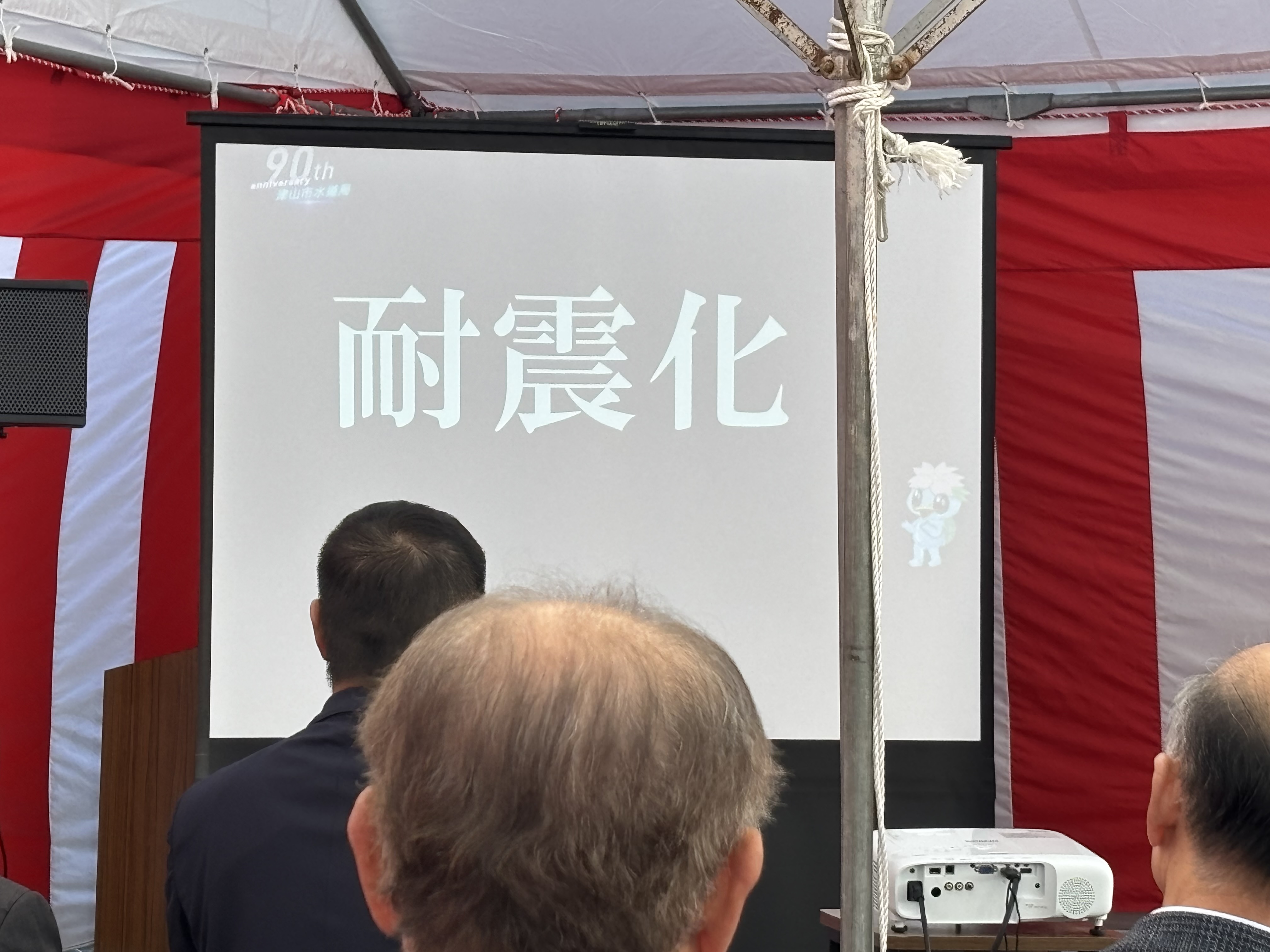 市長、議長をはじめ関係各位…そして津山市議会からは建設水道委員会のメンバーが来賓参加している式典に、呼ばれてもいないのに部外者議員として傍聴扱い(?)で潜り込ませていただきまして…最後列に陣取ってパシャパシャさせていただいていました。