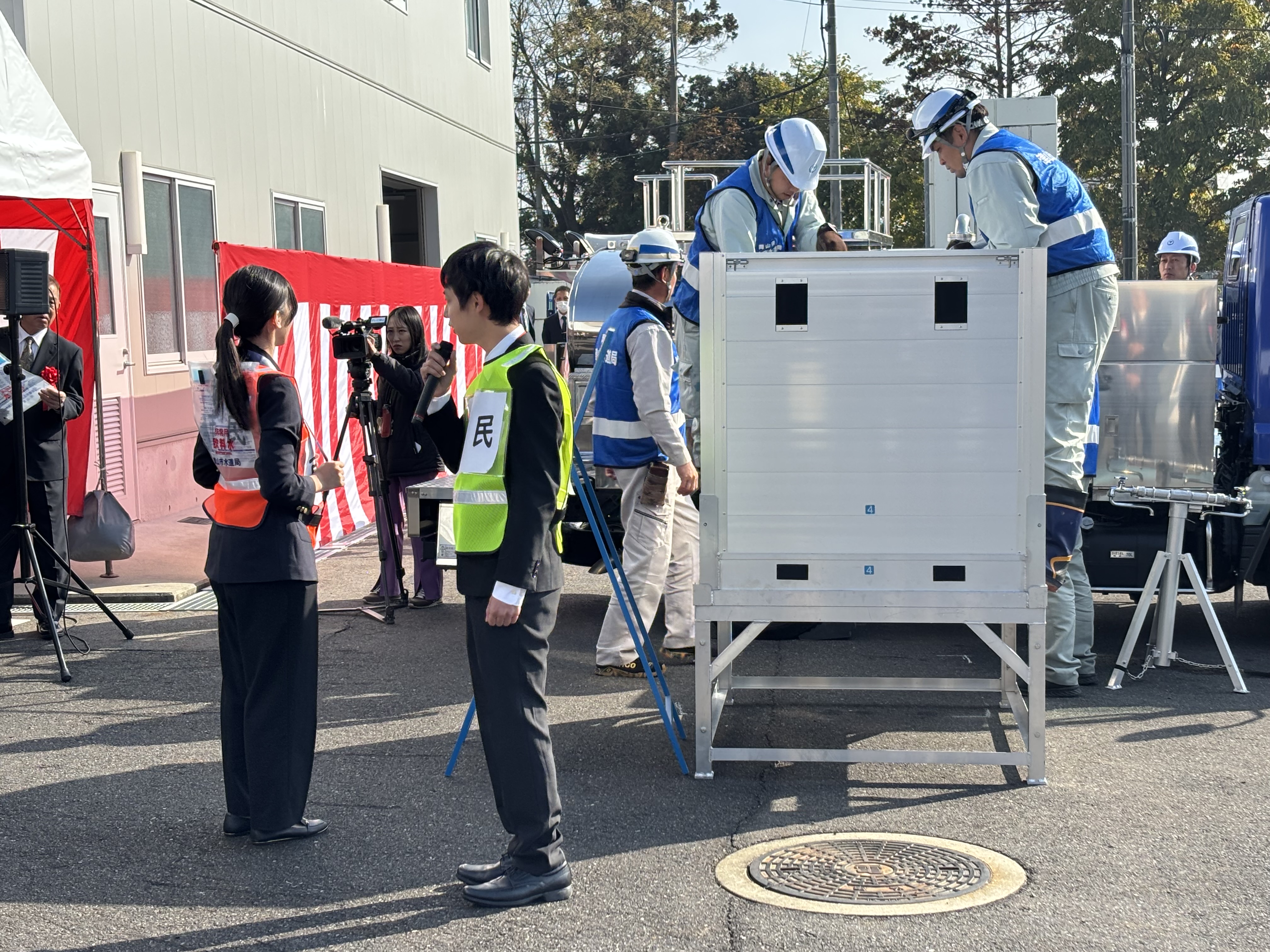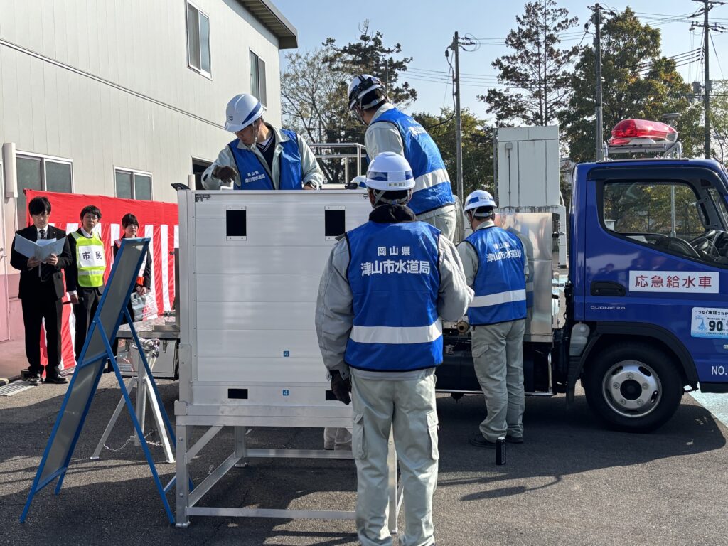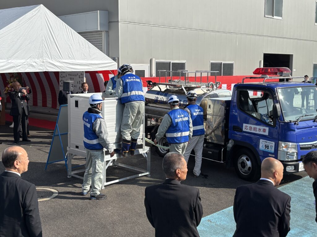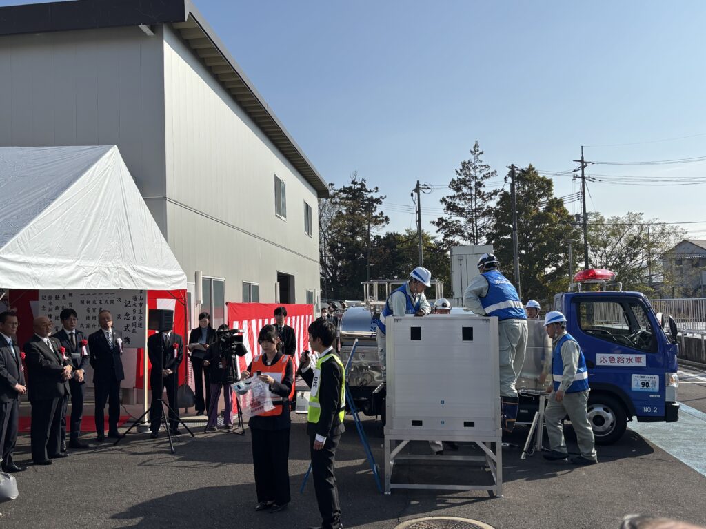災害対応のデモンストレーションとして、給水訓練の様子も実演紹介されました。「もしも」の時の動きをイメージできる内容で…蛇口から出る水の向こう側には、人と仕組みと費用が詰まっているんだよなぁ…と、そんなことに改めて思いを馳せた時間でした。