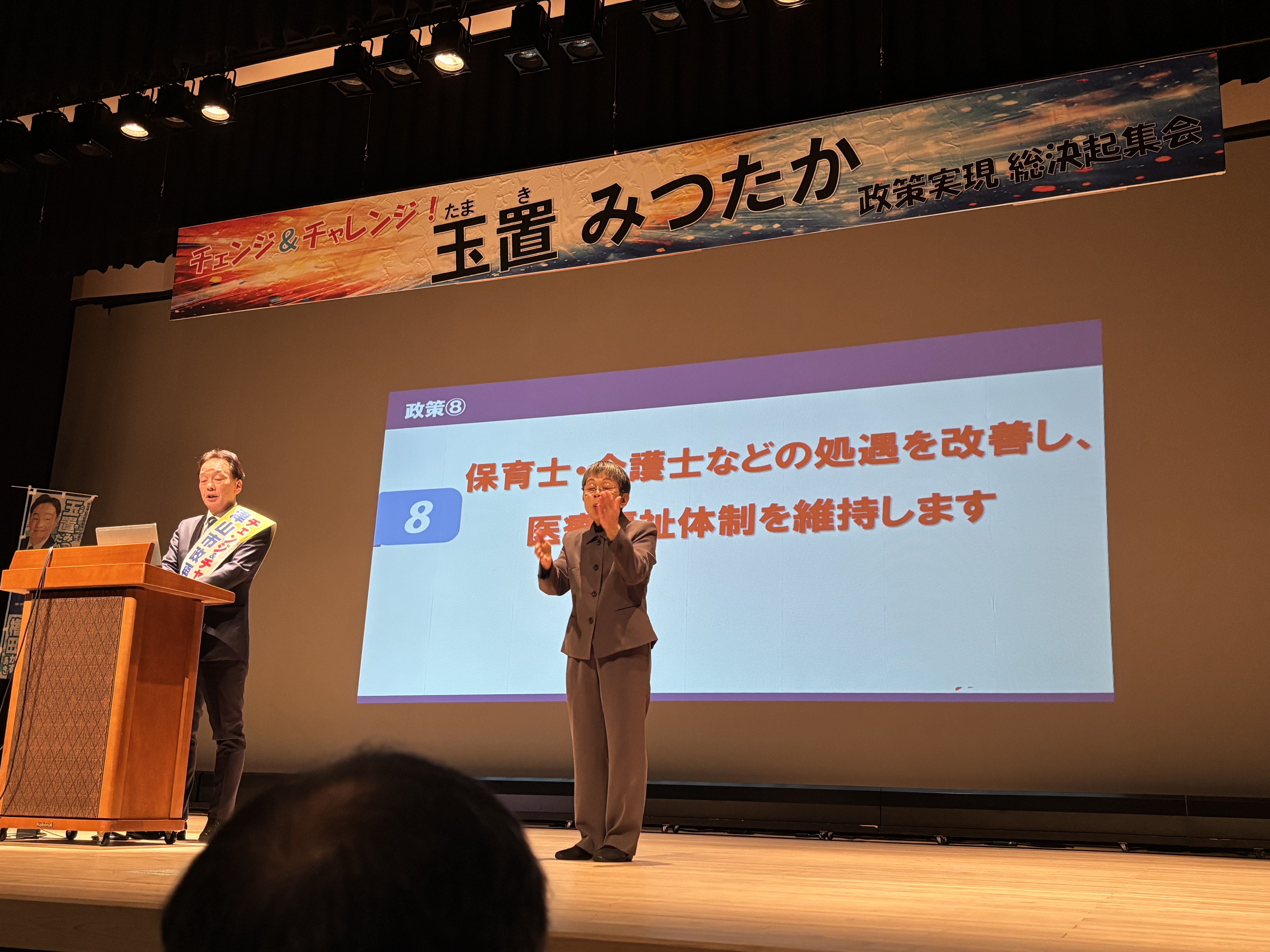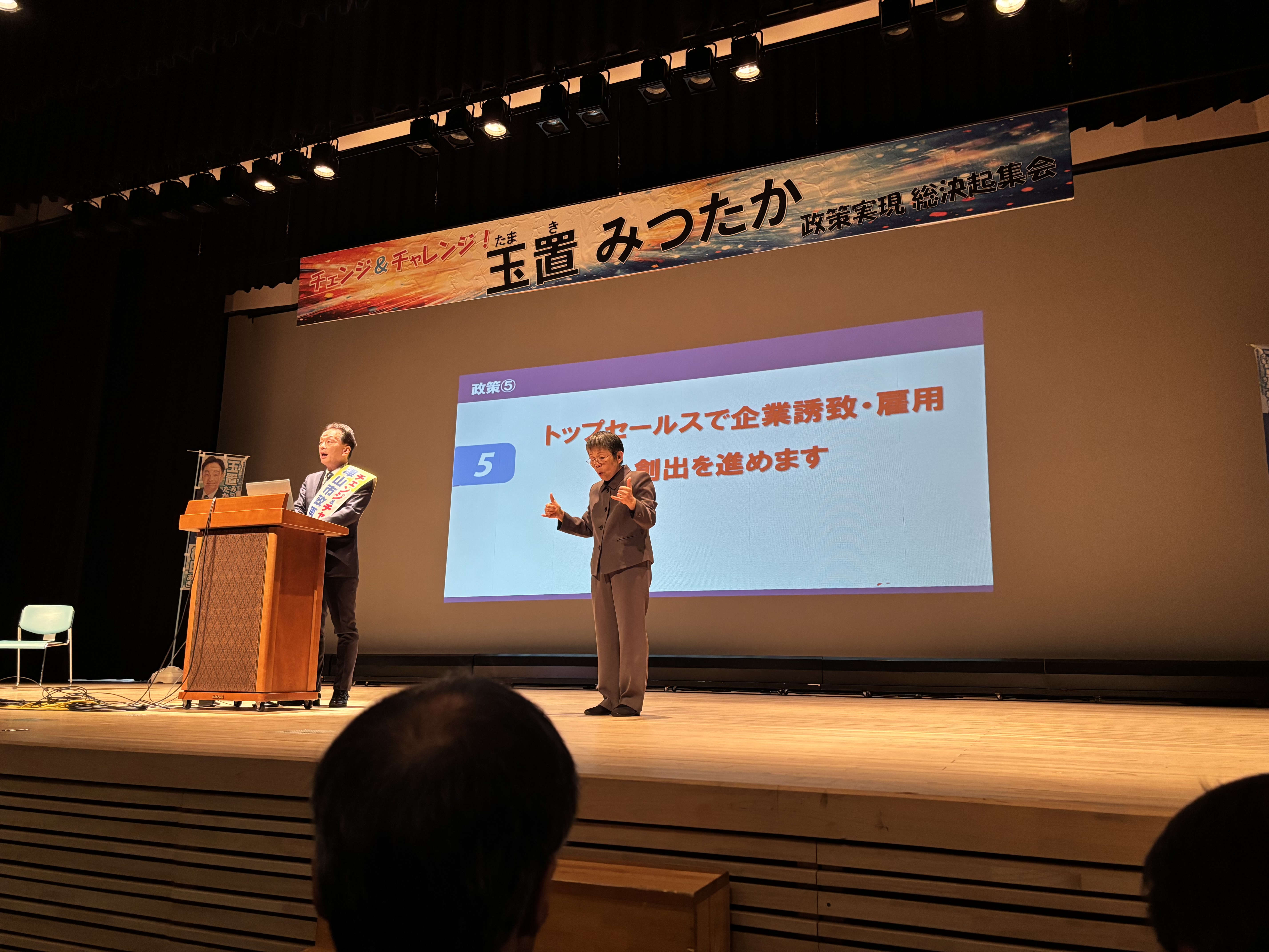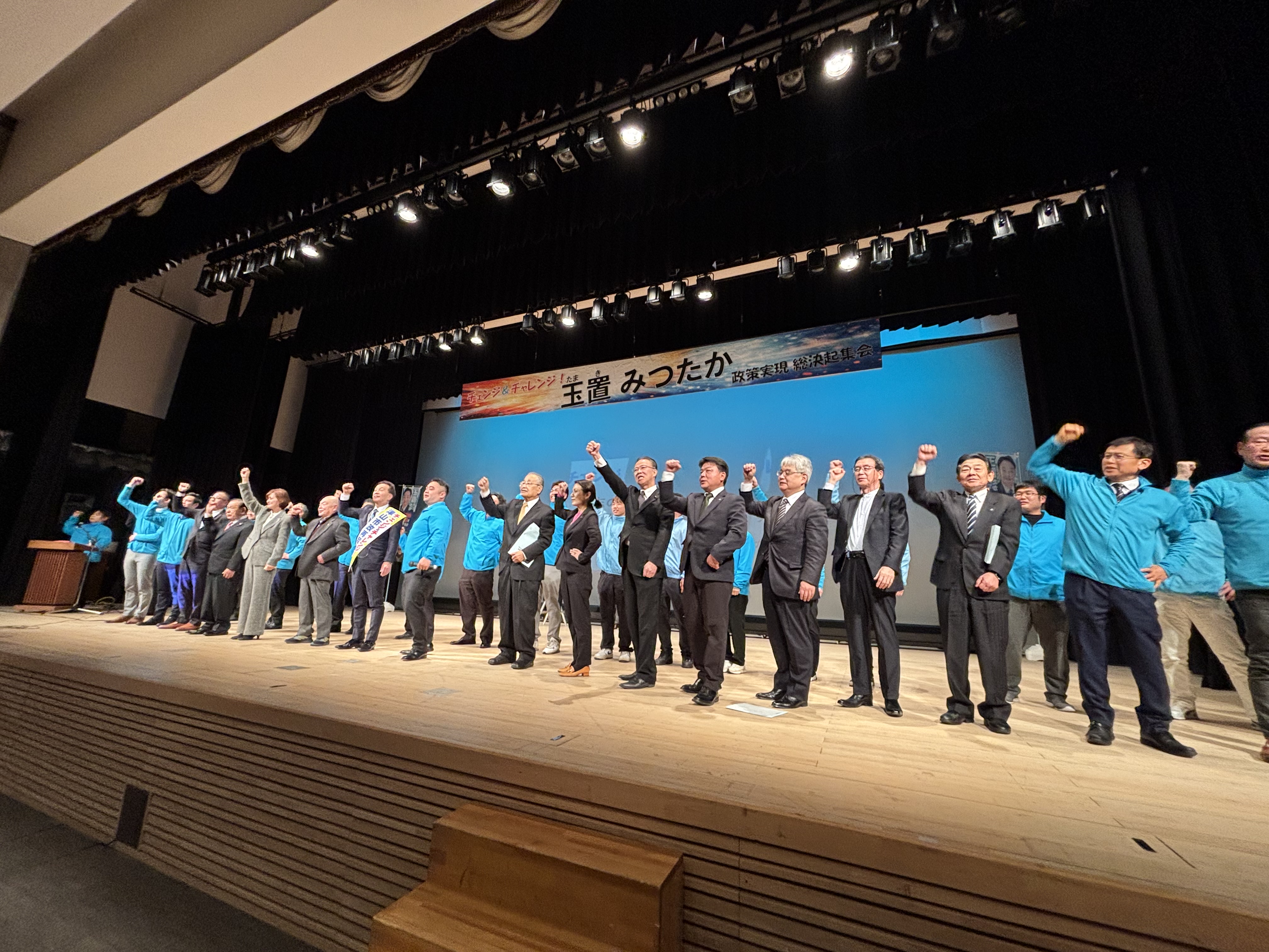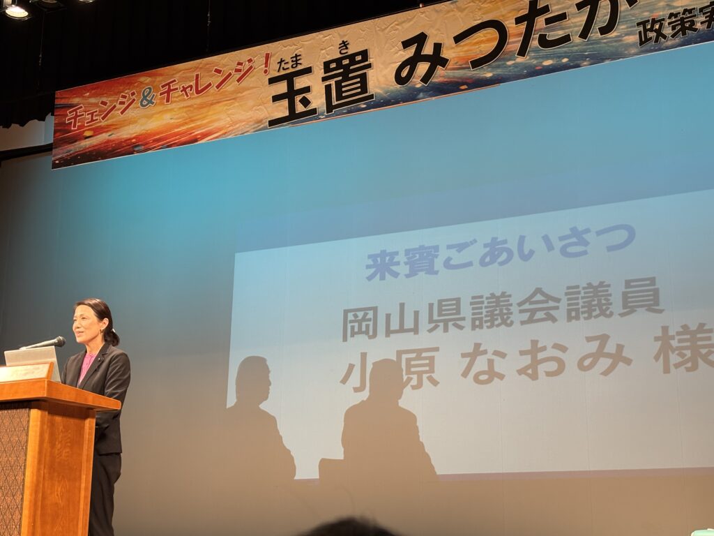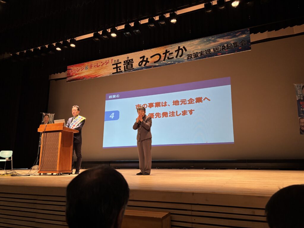 本日は、怒涛のハードスケジュールでしたが…メイントピックは何と言っても、津山市長選挙への挑戦を表明されている、玉置みつたかさんの”政策実現総決起集会”でした。
