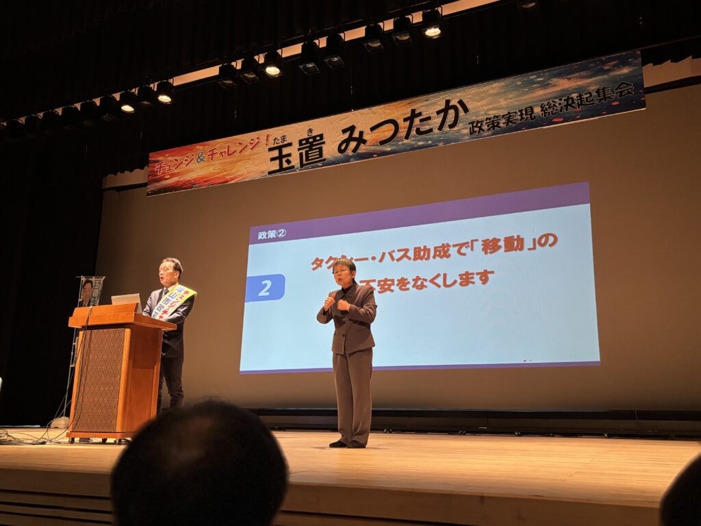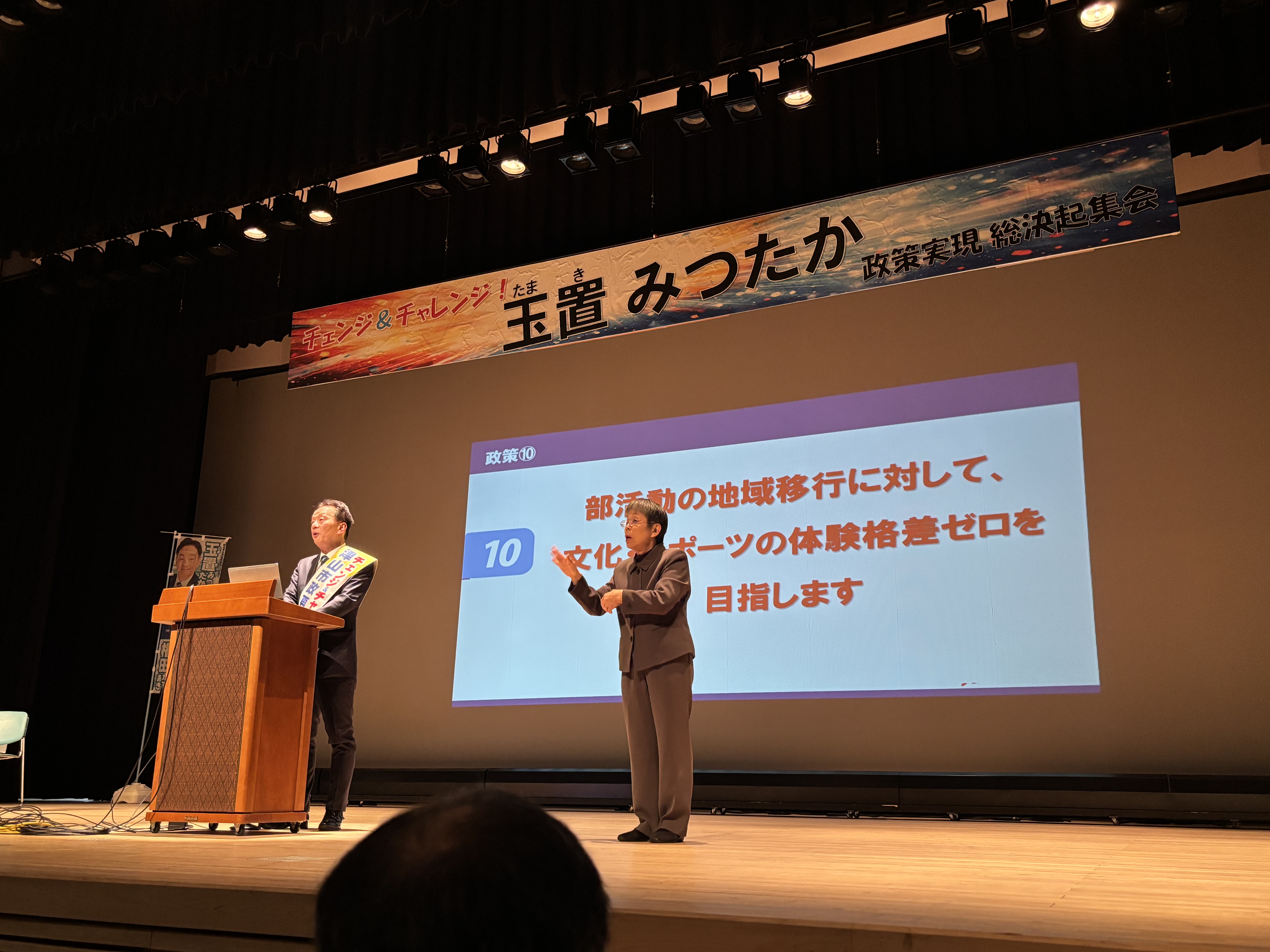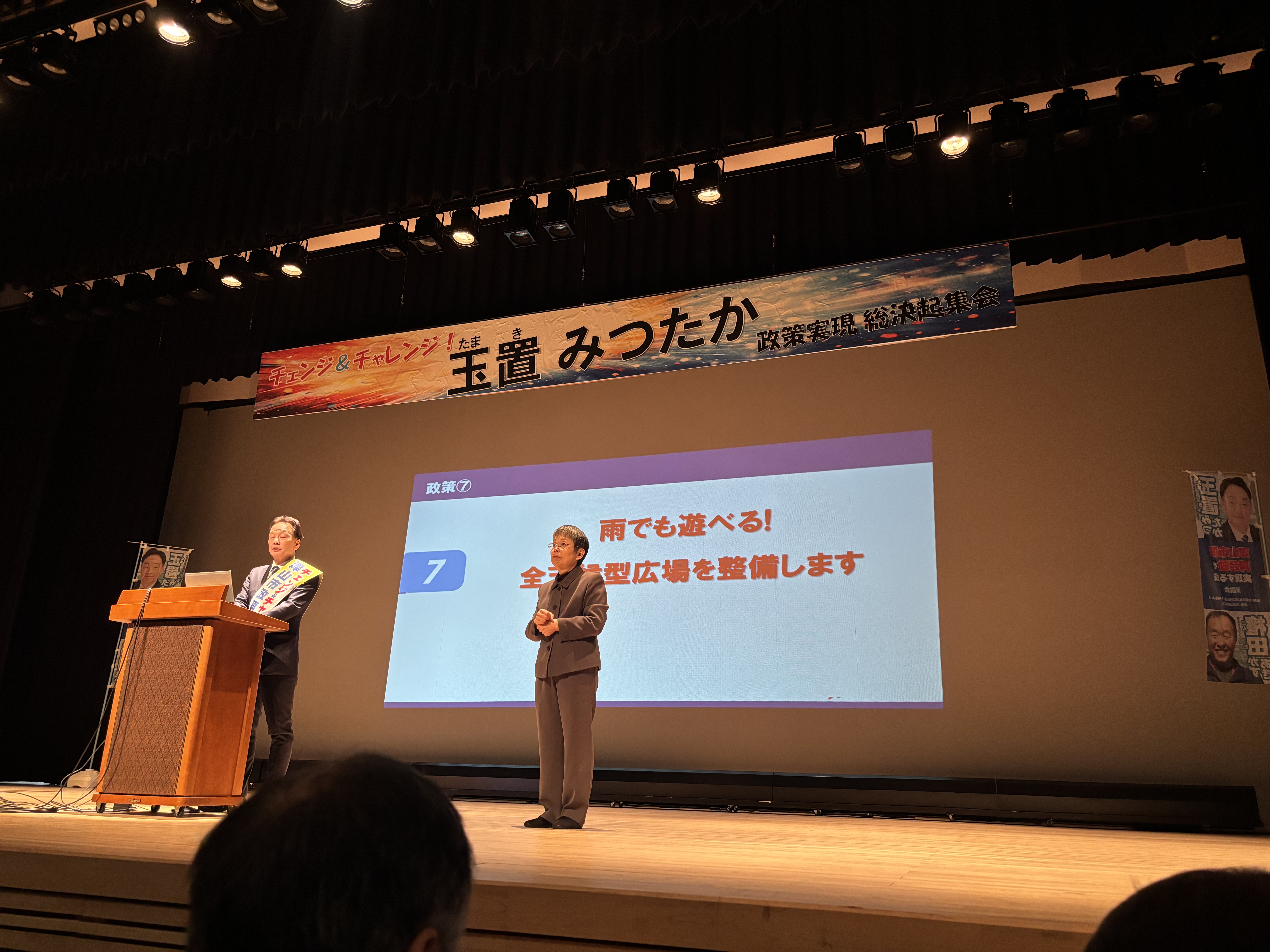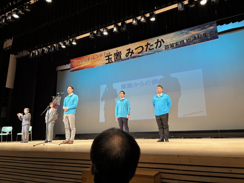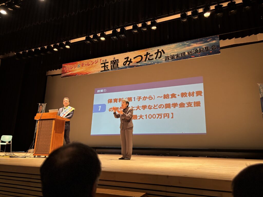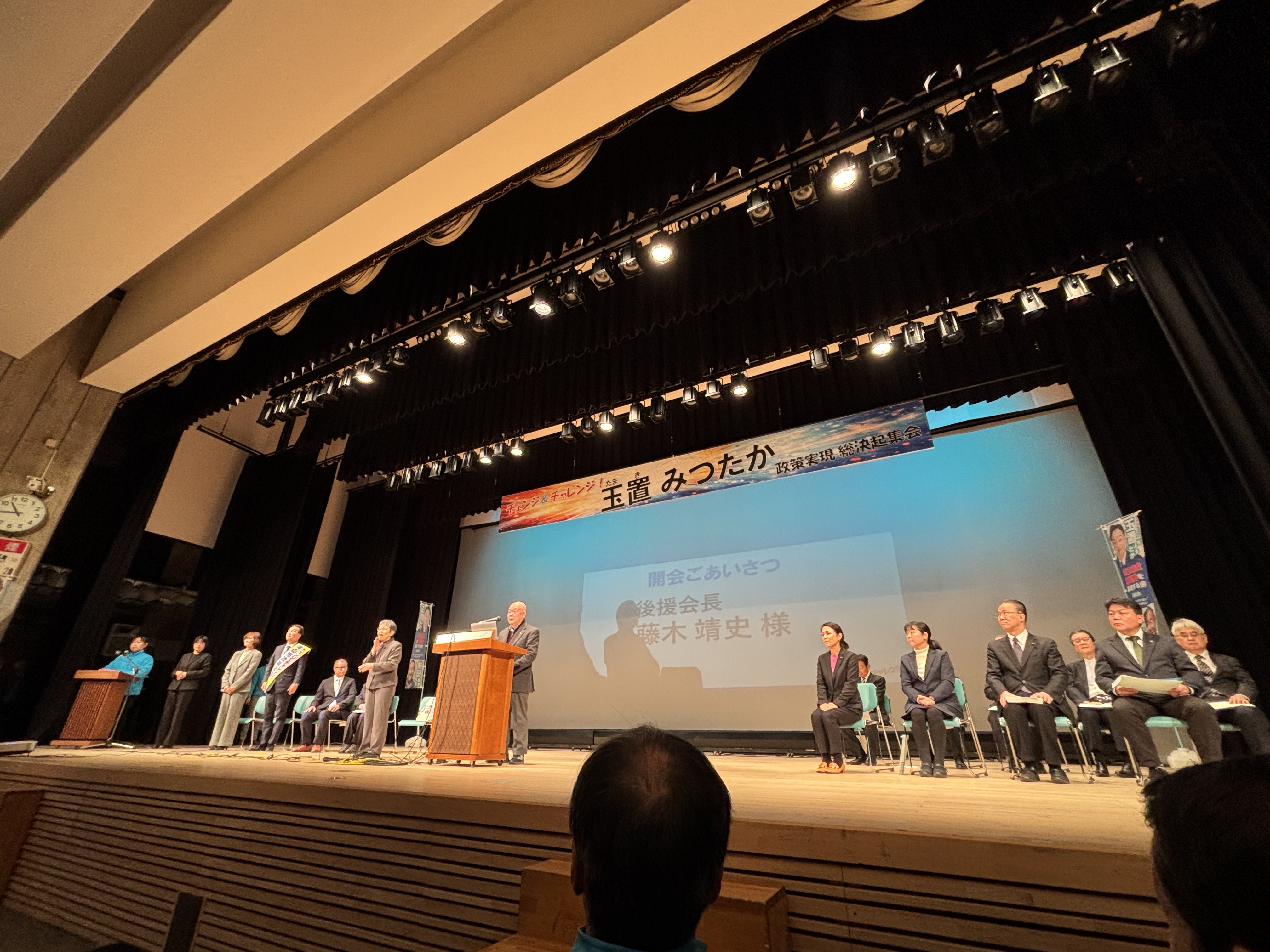 後援会長や県議会議員の皆さまをはじめ、多数来られていた来賓の方々の挨拶や紹介に続き…玉置さんご本人が、自分自身の口で思いはもちろんのこと、政策の詳細などを語られる時間が非常にしっかりと取られていたという印象です。