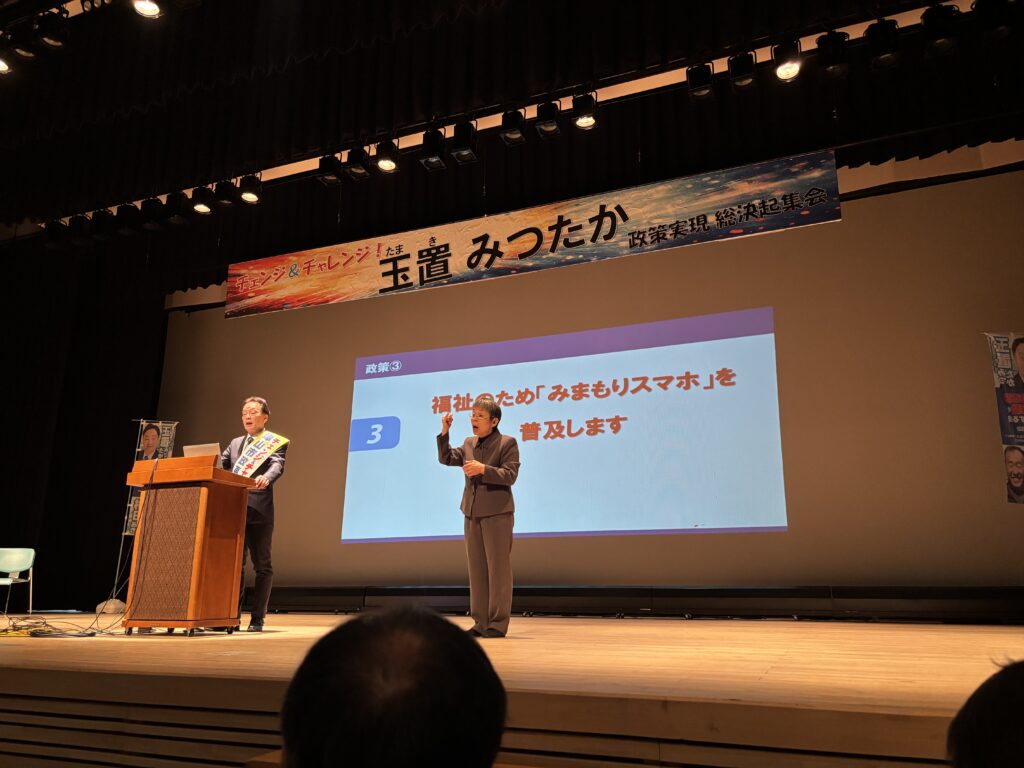 楽しみになる会ではありました。最後にはご家族勢揃いで登壇され、息子さんが素晴らしい挨拶をされたり、掛け声の発声を担われるなど、ファミリーが一丸となって市長選挙に向けて取り組んでおられるのだなという姿勢も伝わってきました。