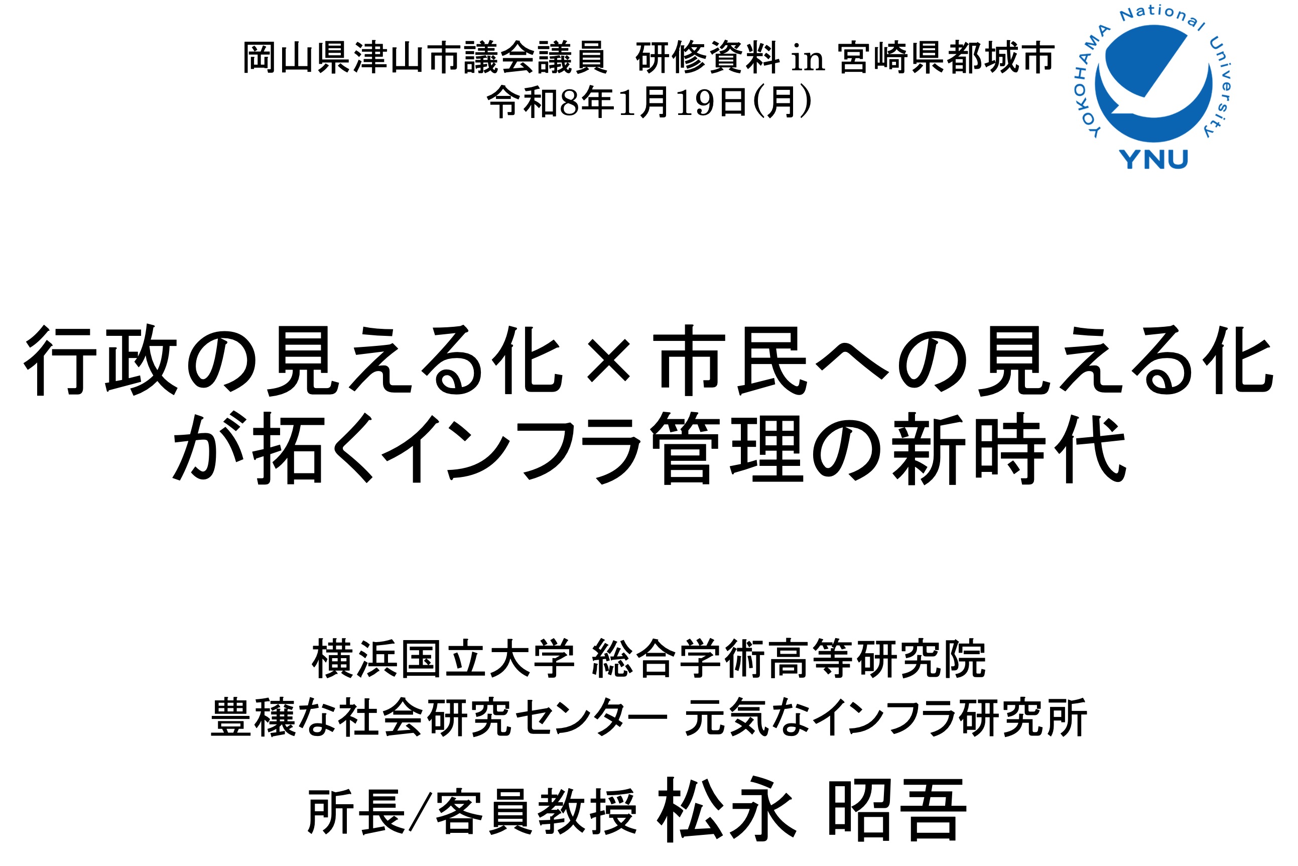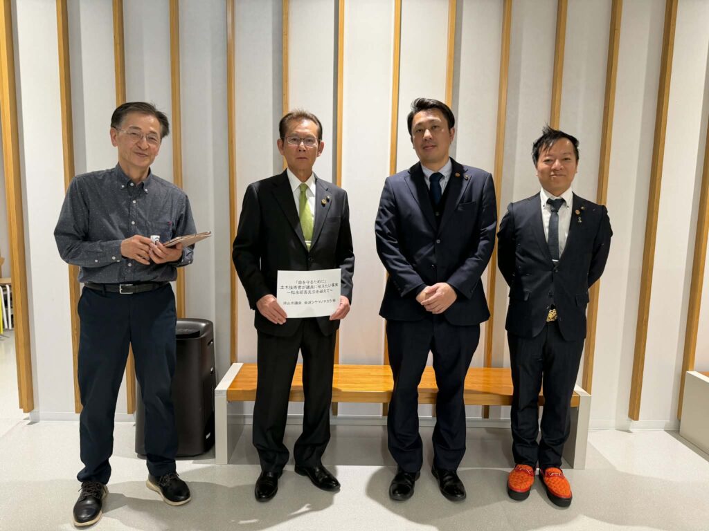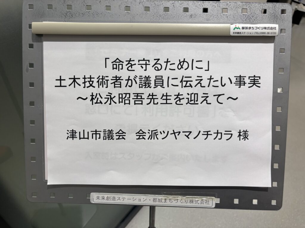 …ってな具合で、実は2本立てのスケジューリングをしておりました。いや、実際には3本立てと言って良い内容。個人的に連絡を取らせていただいた上で、横浜国立大学 豊穣な社会研究センター 元気なインフラ研究所所長・客員教授であられる松永昭吾先生をお迎えし、講話いただくという場を設けていました。松永先生は日本中を飛び回り、様々なシーンで活躍されています。災害調査や構造物延命化を専門とする土木技術者でもある先生に、私たち地方議員に伝えたい”事実”をお話いただくという趣旨の会でした。