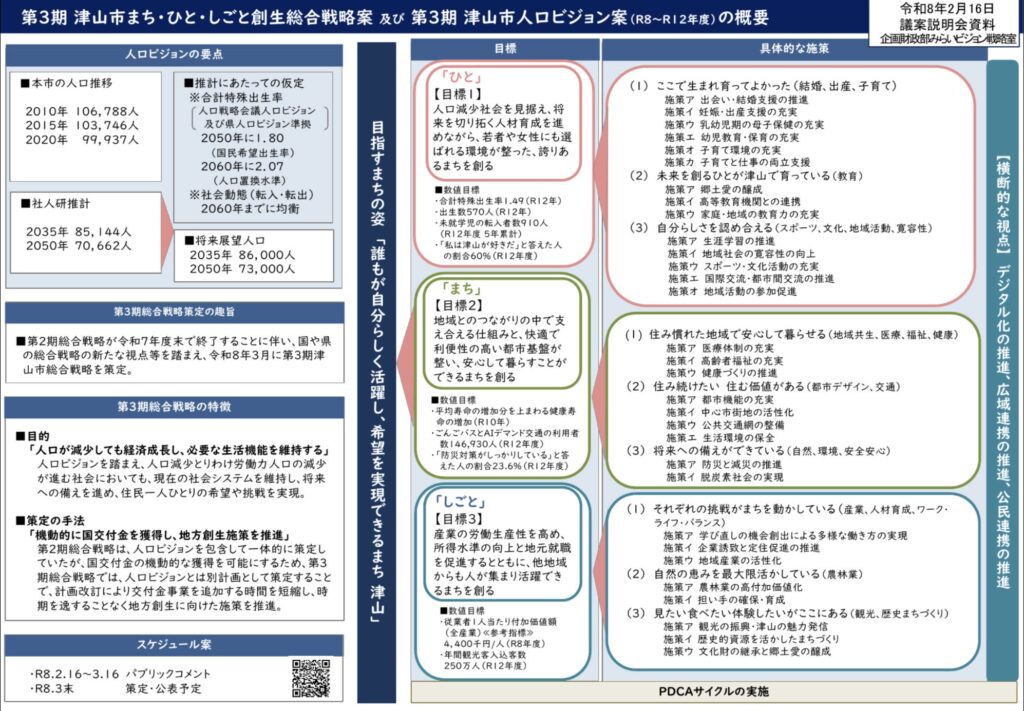 来年度予算の話だけでなく、令和7年度の第7次補正予算や総合戦略、人口ビジョン案など、今と未来の津山市を考える上で大切な話がいくつも語られました。本日よりパブリックコメントも実施されています。ただあらゆる項目に関して今回は珍しく誰からも何の質問も出ないままで非常にスムーズに会が終わりました。この議案説明会であまり質問し過ぎると、事前審査だ何だと言われてしまうこともありますので…特段に皆の前で質す必要性があると感じるような疑問点はなかったので、私も珍しく黙っていました。