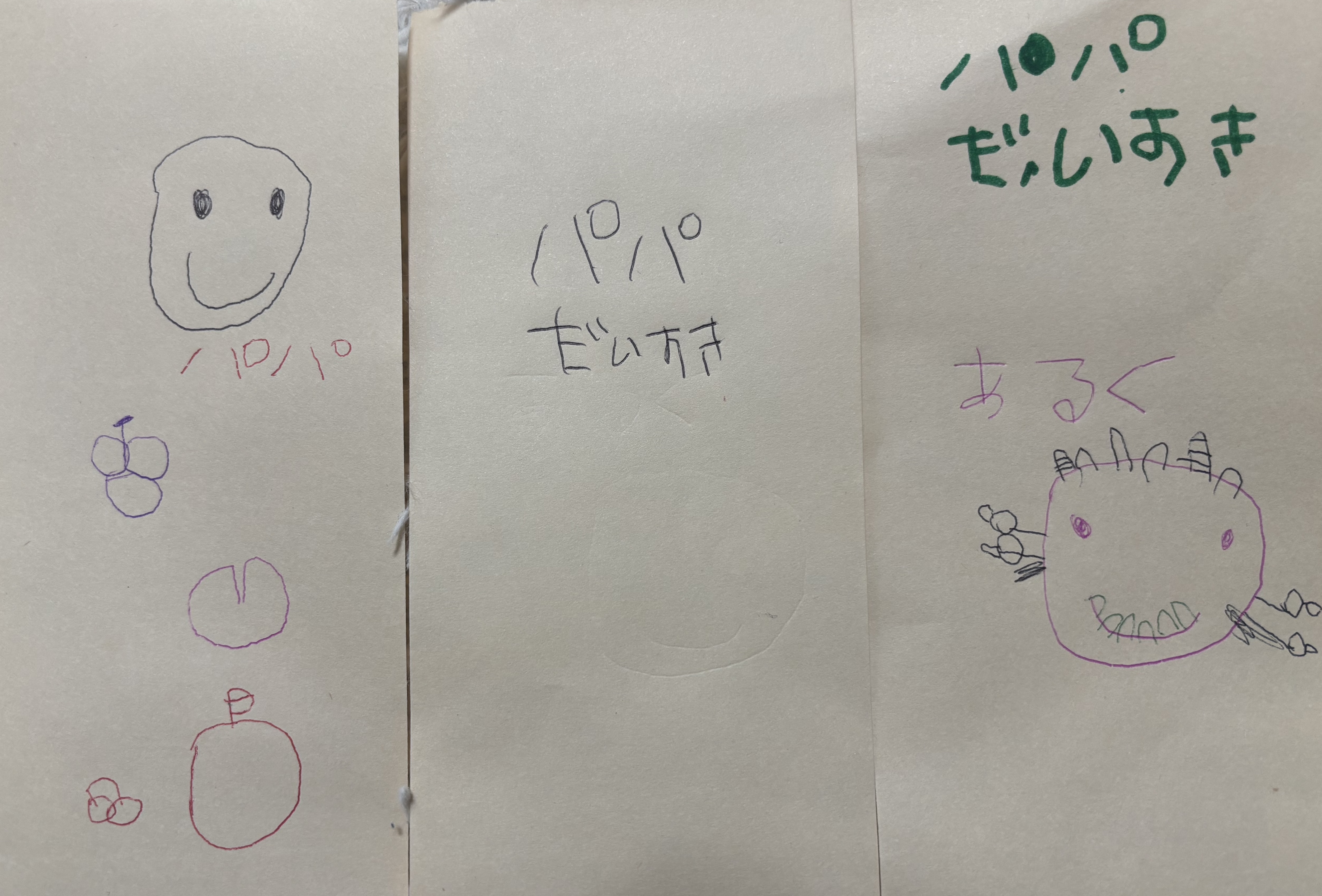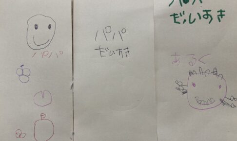 ただ、そんな日でも夜には眠る前の息子と戯れることで、リラックスできました。子どもの存在って、メンタルの回復力が段違いだなと改めて思います。今日の私に必要だったのは、多分こういう時間だったんだろう。アイキャッチ画像にも載せたように非常に嬉しい”お手紙”もいただきましてね…こういうの、効くお年頃なので、とても沁みます。4歳児、字が上手過ぎるだろ…髪がないことを除けば満点ですよコレは。