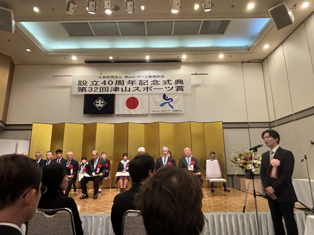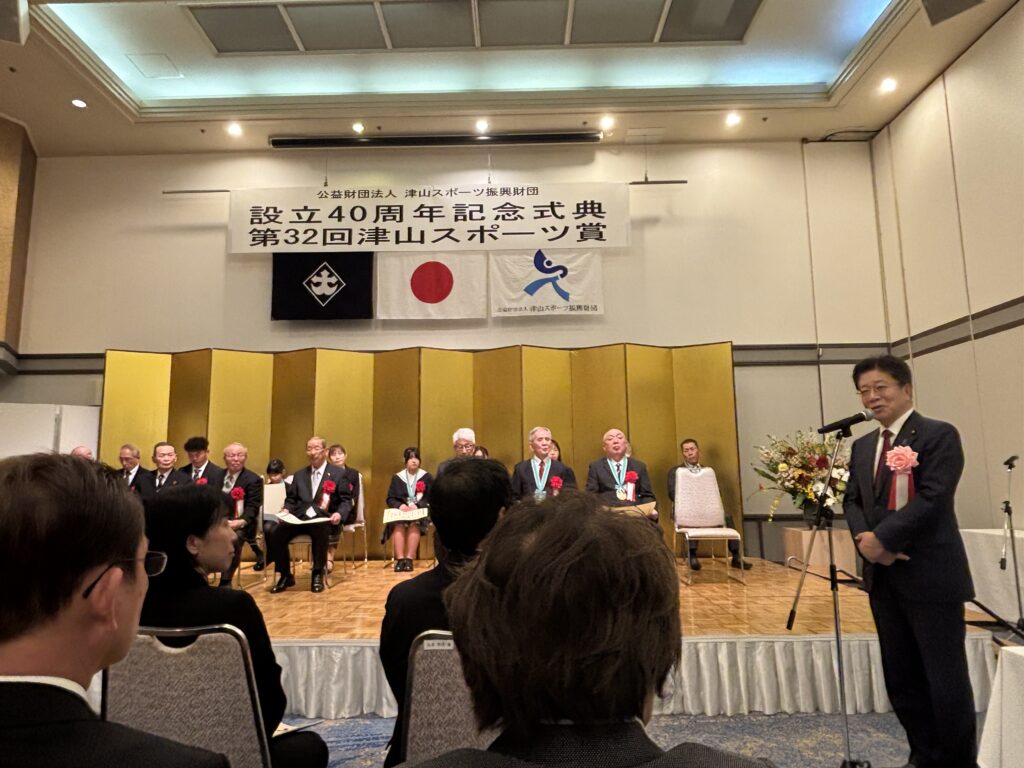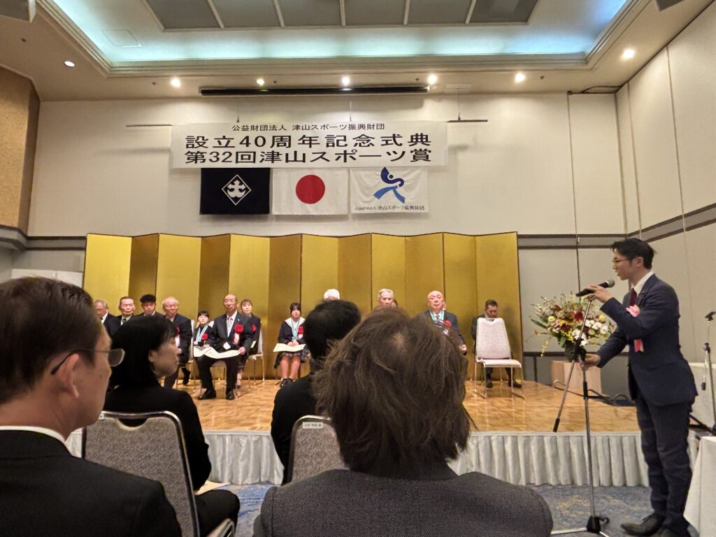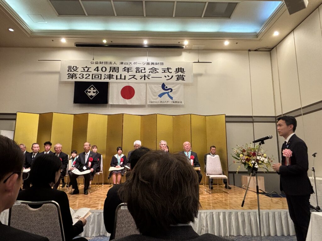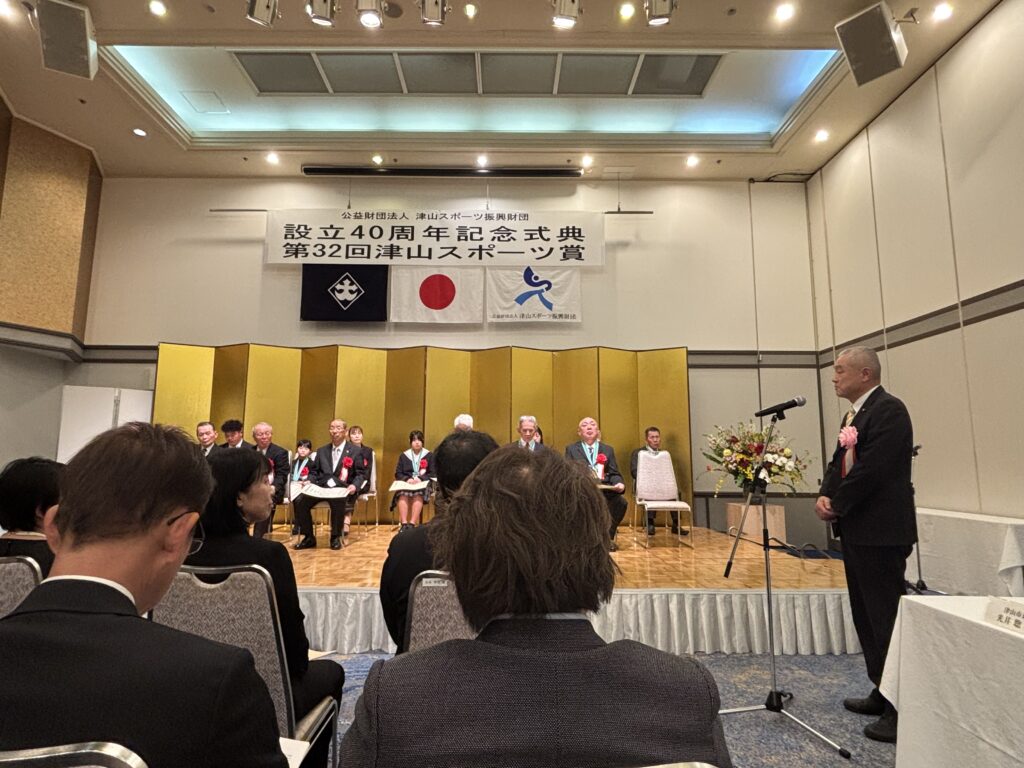 アイキャッチ画像や標題でもおわかりの通り、津山スポーツ振興財団の40周年記念式典、そして第32回津山スポーツ賞表彰式に参加させていただいてきたのです。