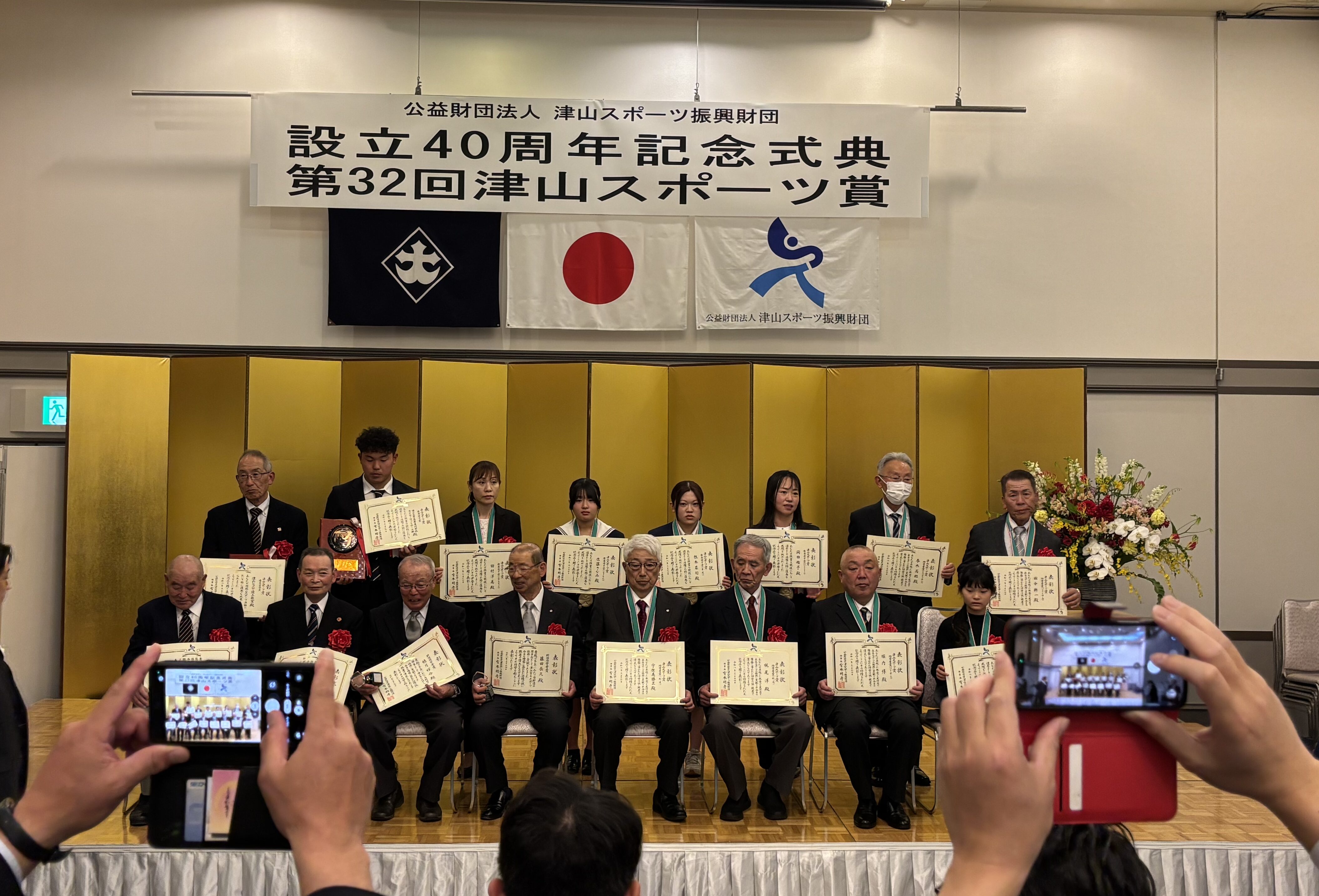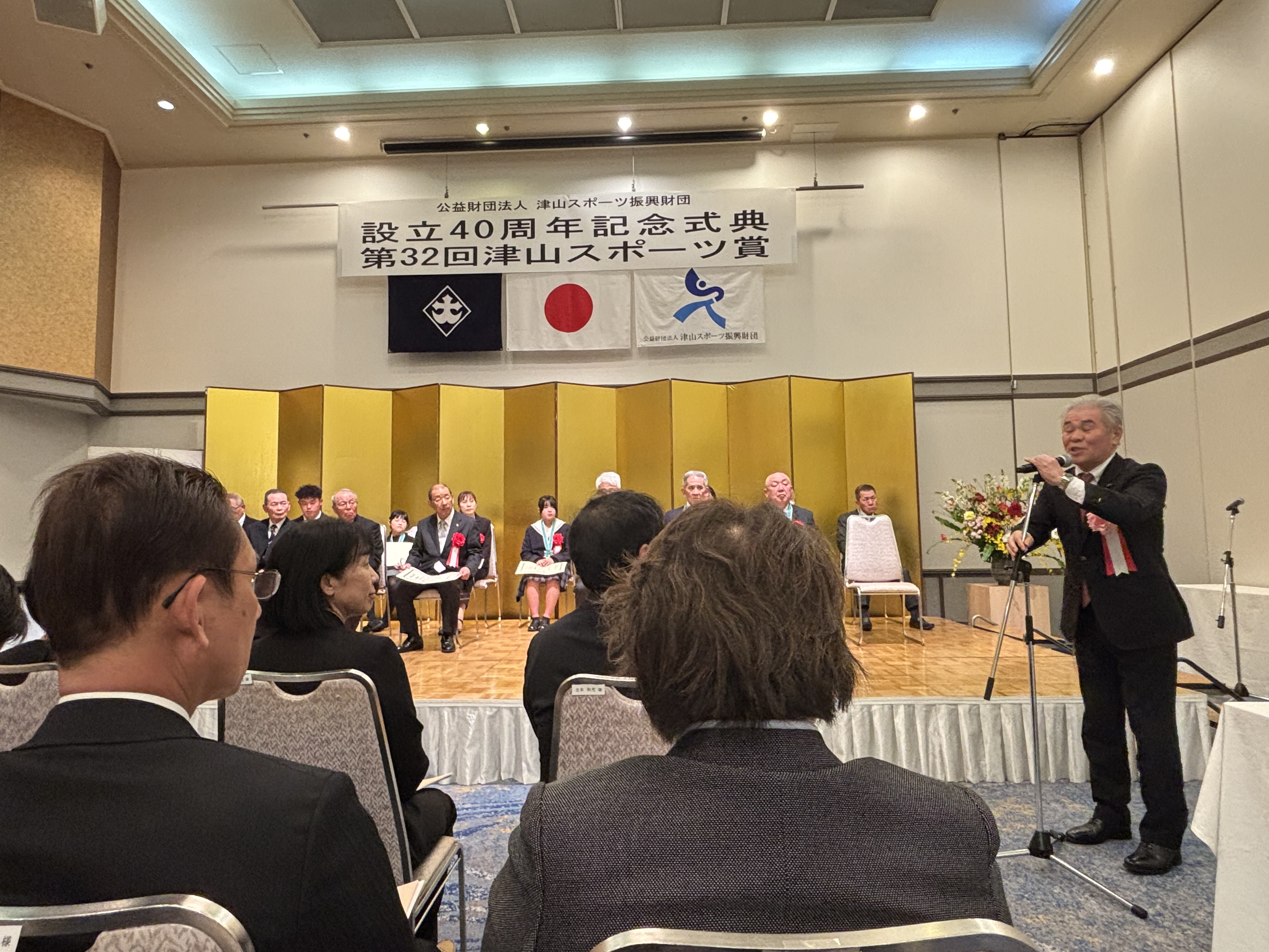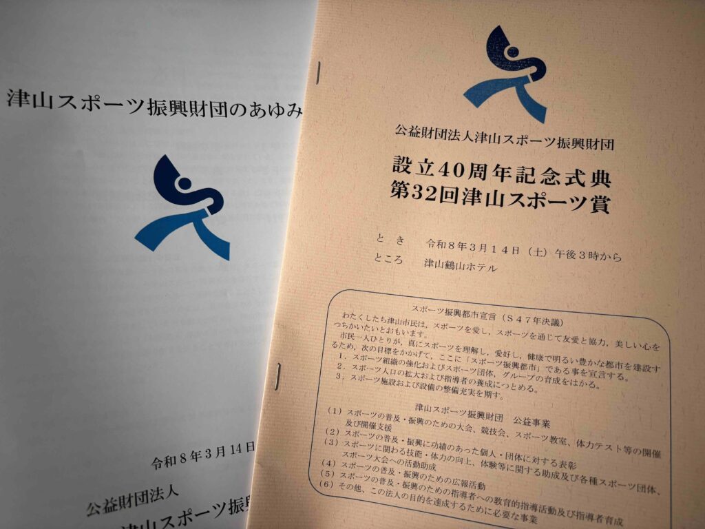 アイキャッチ画像や標題でもおわかりの通り、津山スポーツ振興財団の40周年記念式典、そして第32回津山スポーツ賞表彰式に参加させていただいてきたのです。