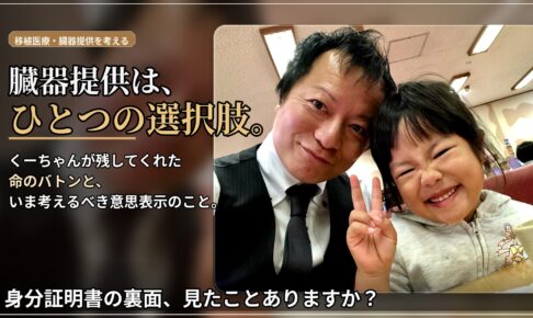 まずはぜひ、ご自身の身分証明書の裏面を見てみてください…そして、ちょっとだけでも考えてみてください。臓器提供も移植医療も再生医療も、遠い世界の話ではないのです。