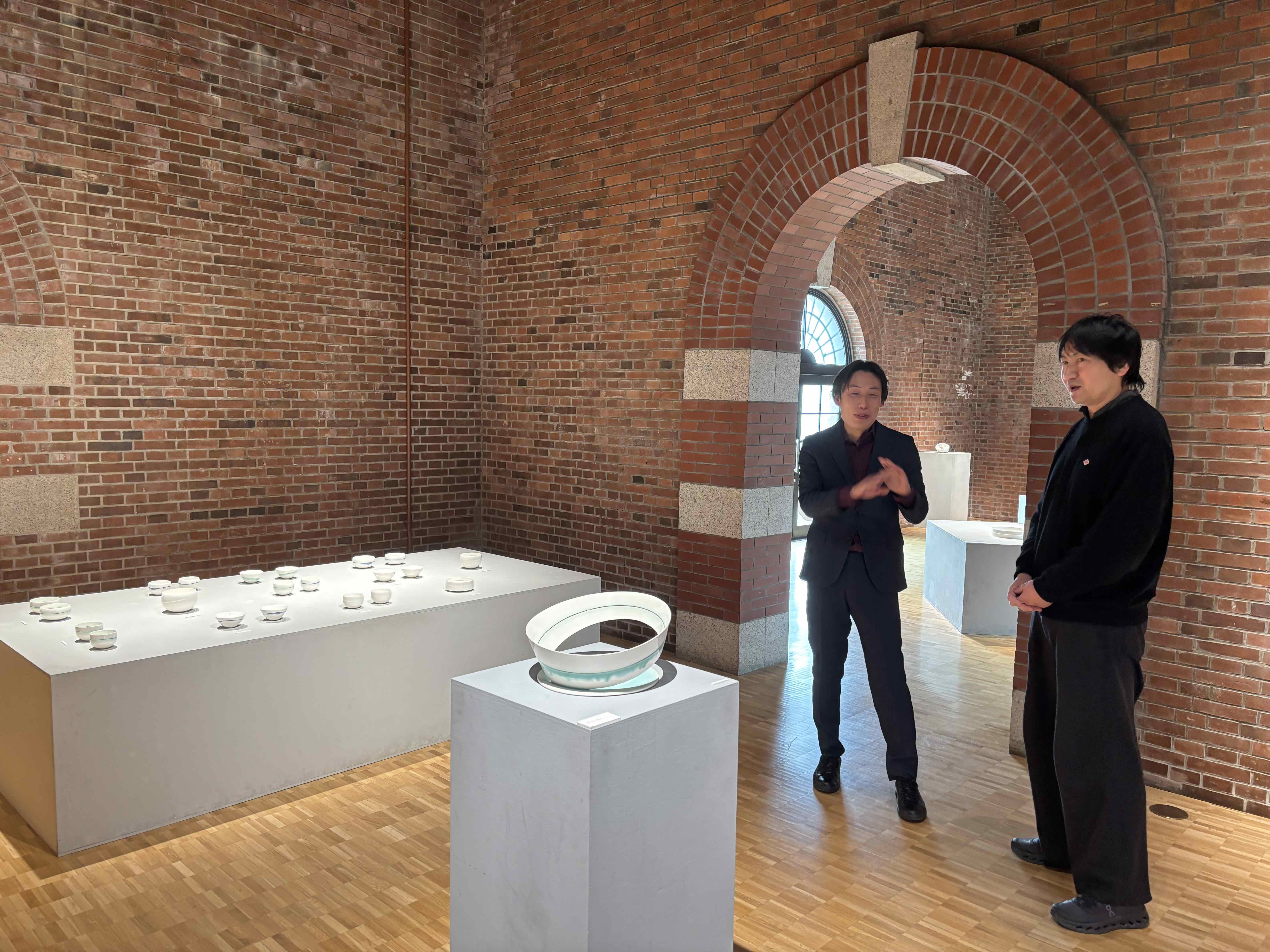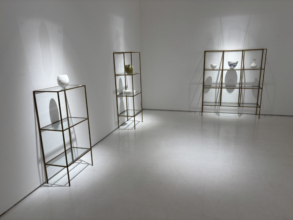 飯綱さんによる公式サイトやDMなどの紹介文や写真などを拝見していた段階では、かなり繊細な作風なのだろうなと感じていました。けれども、やはり現地で実物を前にすると印象はさらに深まります。静けさの中に確かな迫力があり、まさに”多層的な感覚へと誘う陶の世界”という表現がしっくりくる展示だったように思います。