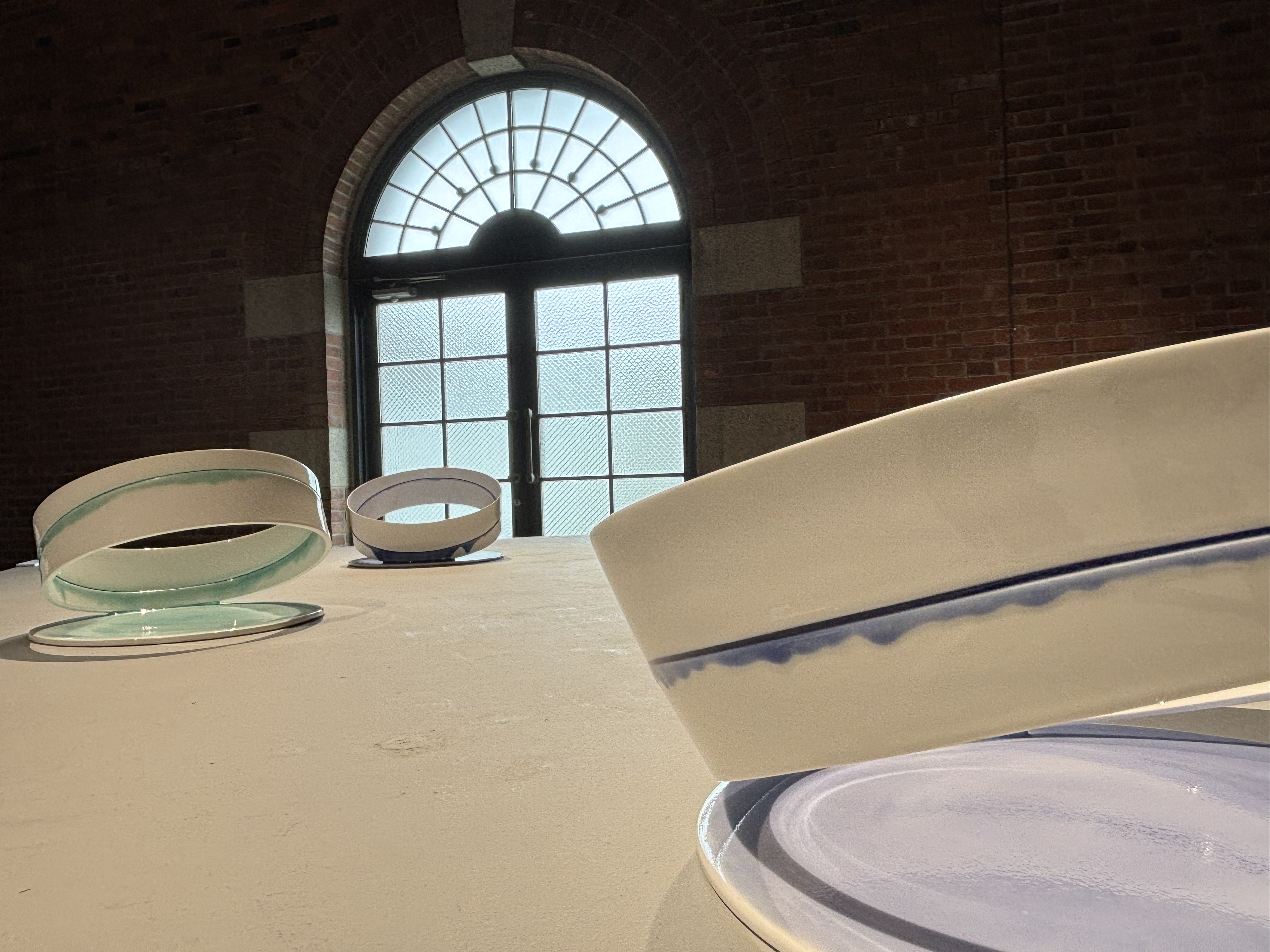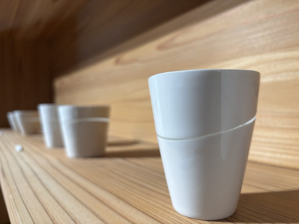 展示されている作品を実際に拝見して強く感じたのは、ただ繊細で美しいというだけではない、芯の強さのようなものです。釉薬(ゆうやく)を独自に調合されて実験的、挑戦的とも思える用い方をされている作家の制作姿勢そのものから、人生への向き合い方にも通じるような、どこか哲学的な気配が感じられました。